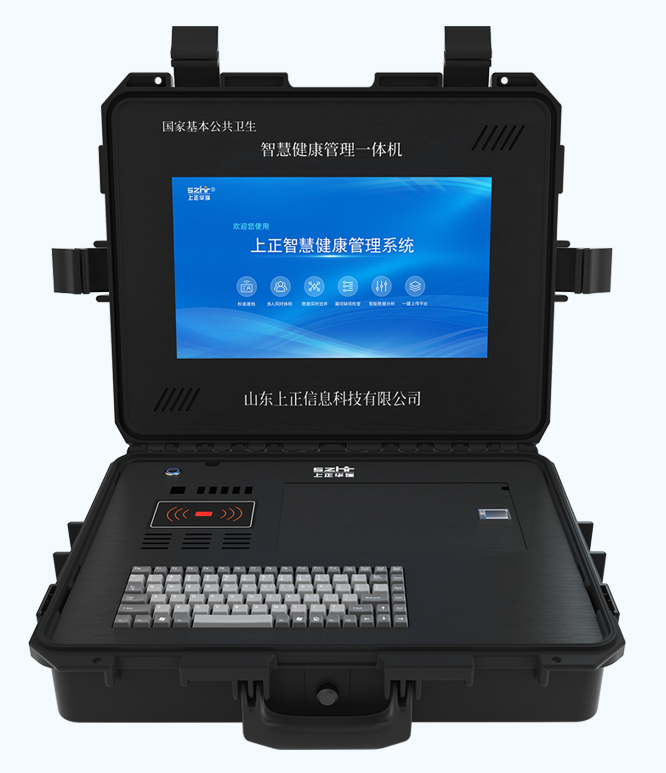 上正便攜式健康管理一體機是一款可實現(xiàn)由身高體重秤、血壓計、體溫計、尿液分析儀、心電采集盒、B超機等設備檢測的人體生命體征數(shù)據(jù),通過無線技術自動傳輸?shù)街悄芙】倒芾硪惑w機中,形成電子檔案,并上傳至上級衛(wèi)計委居民健康檔案管理系統(tǒng)和數(shù)據(jù)庫中心,實現(xiàn)國家基本公共衛(wèi)生智慧建檔、查體和管理功能的自助健康體檢機。